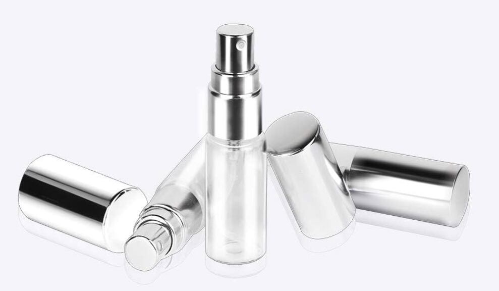 *スプレーはガラス製、本体部分が四角又は丸、スプレー部分は丸のスタイリッシュなデザイン。掌にすっぽりおさまるサイズです。
